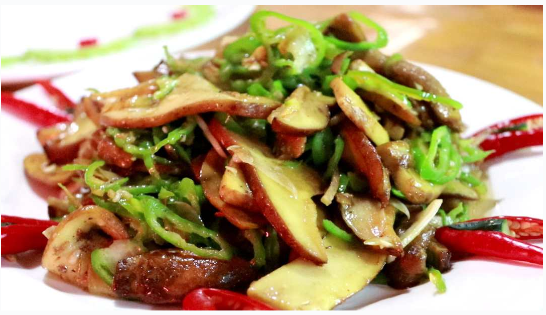 粉菌,作為野生菌的“主力軍”,在姚關(guān)久遠(yuǎn)的飲食文化中演化出了多種做法,而海艷擅長(zhǎng)做的就是一種最大眾的做法——粉菌炒辣椒。只見(jiàn)她將早上新采摘的粉菌洗好后切片,將油燒熱,當(dāng)油溫合適后放入粉菌,炒熟后備用。再放入姜絲、蔥段、辣椒絲、花椒,當(dāng)聞到佐料香味后放入備用的粉菌,將粉菌的清香與佐料的鮮香充分結(jié)合。一道美味的粉菌炒辣椒就出鍋了。